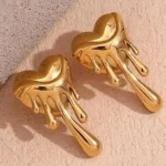 These elegant gold-toned earrings feature a unique melting heart design, perfect for adding a touch of charm to your look. Made with stainless steel and 18K gold plating, these stud earrings are secured with a post and back closure for a comfortable fit. Whether it’s a casual outing or a special occasion, these earrings are sure to stand out.